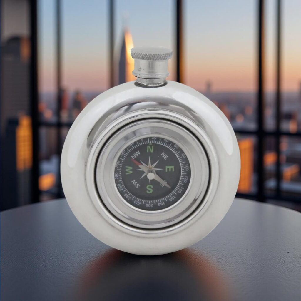 Pocket Compasses & Desktop Compasses Sterling Silver Pocket CompasdDesk top clock /compass Clock/Compass Box Piano Finish Round rosewood silver desk compass Compass key ring Free Engraved Monogram Ships Wheel Compass Key Ring Michaelangelo of GreenwichThe most recognized name in engraved gifts410 Greenwich Avenue, Greenwich CT203 661 8540 info@mikegifts.com Pewter flask/compass